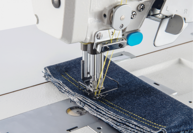 Комп’ютеризована двоголкова швейна машина човникового стібка з відключенням голок та технологією електронного натягу, для важких тканин